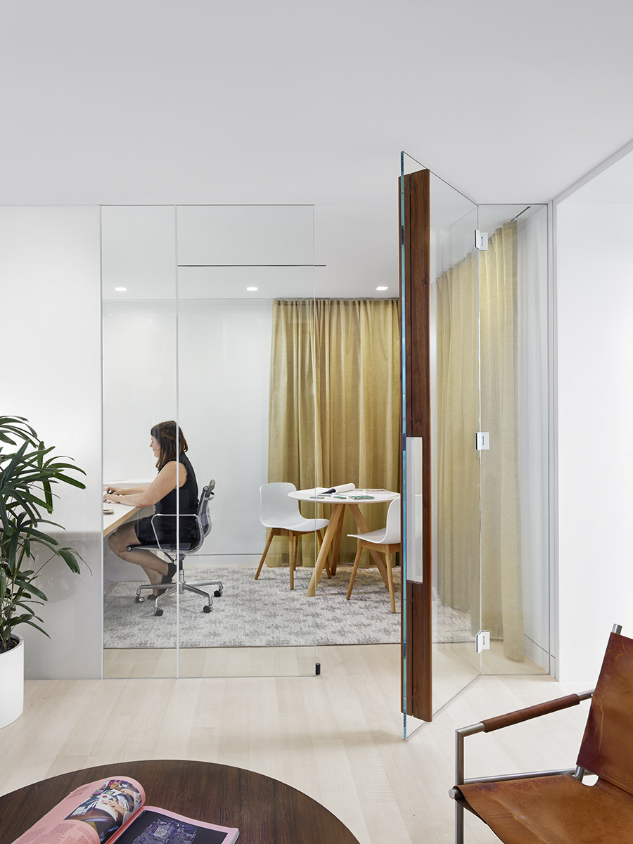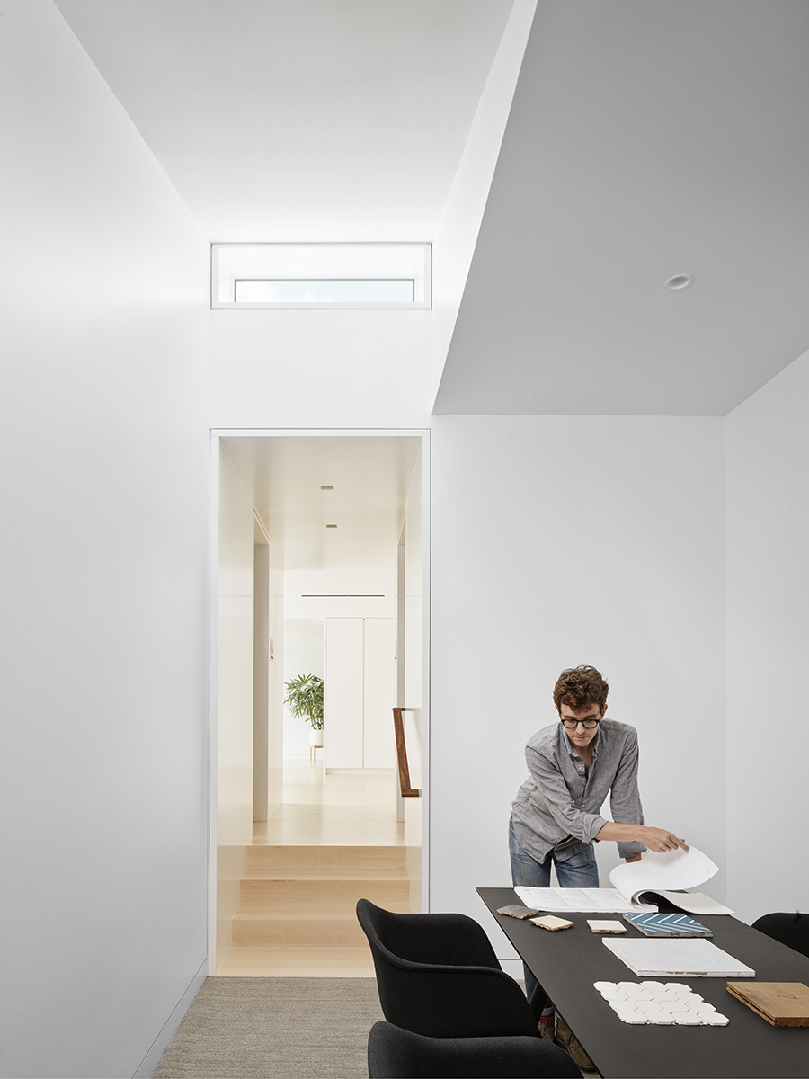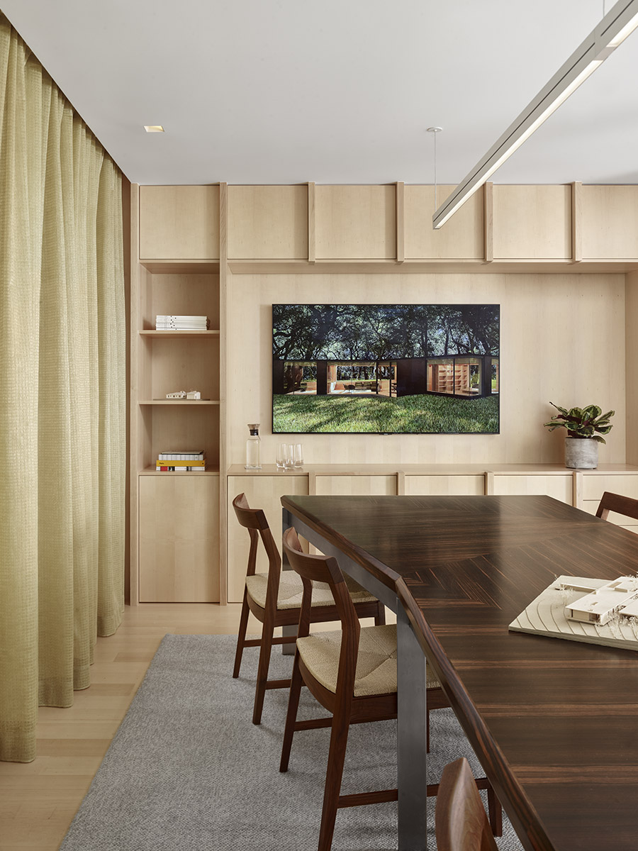 We worked with a nuanced white plaster exterior but retained the distinctive shadow-block where possible. The interior design breaks down into small, residential nests. Working in the depths of pre-vaccine COVID 19, we delivered the project design-build, capitalizing on the talent embedded in Austin’s construction community.