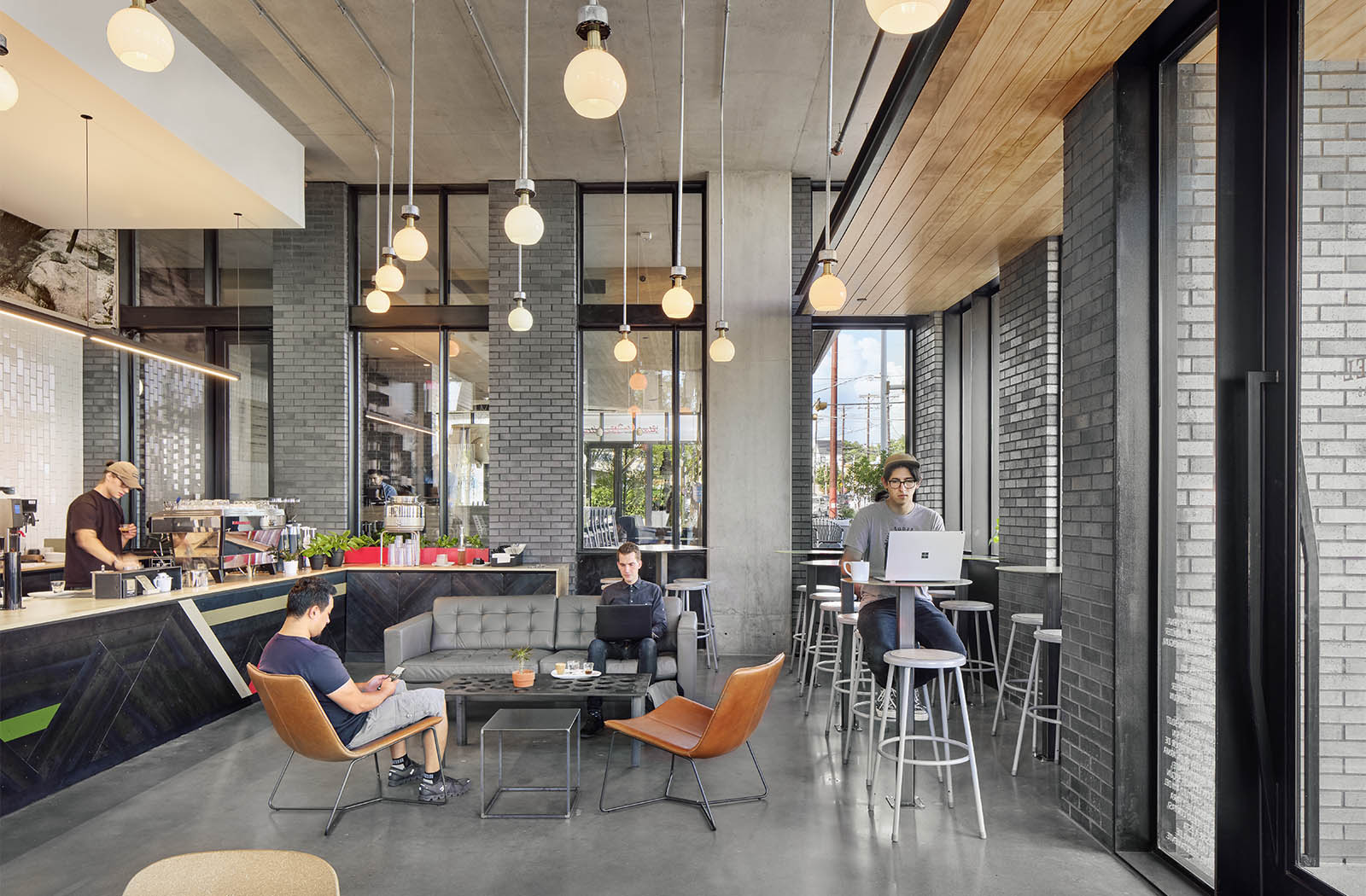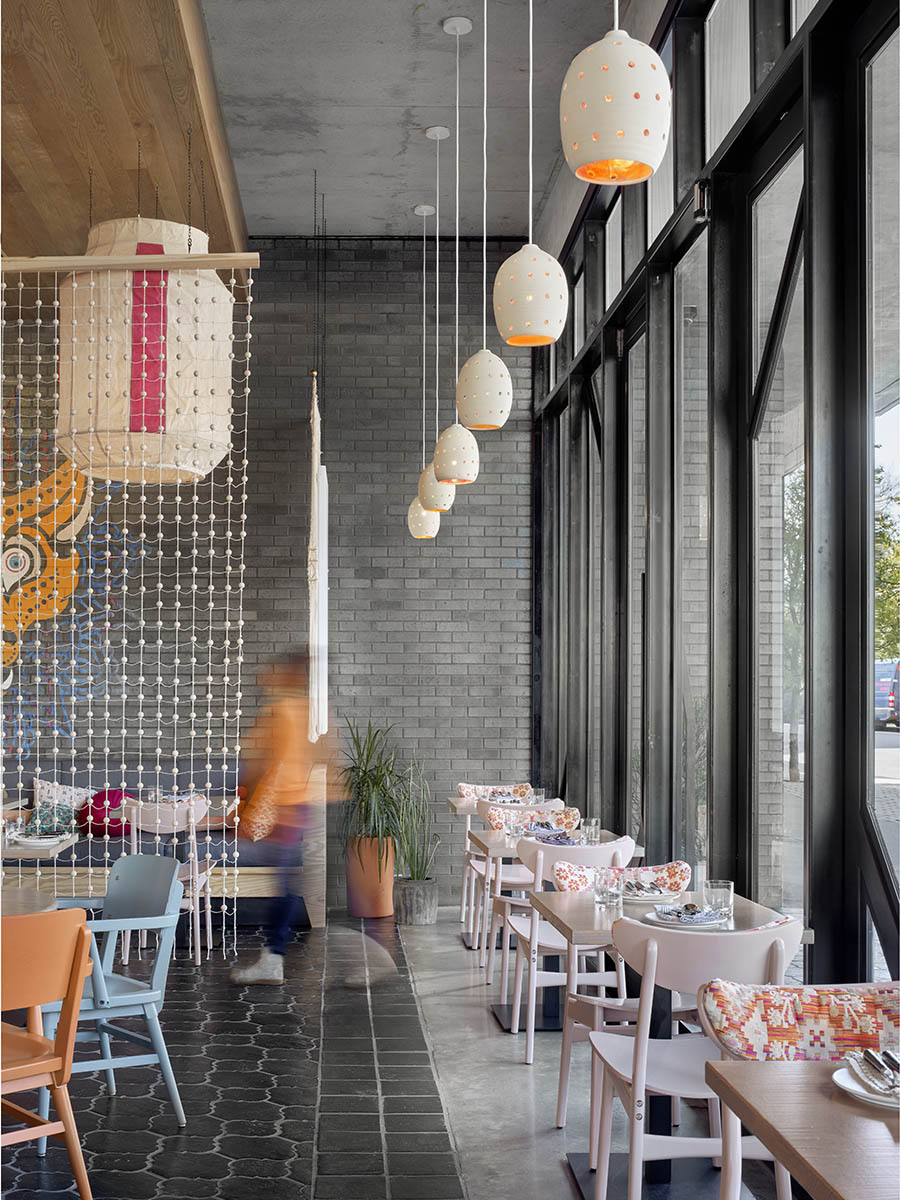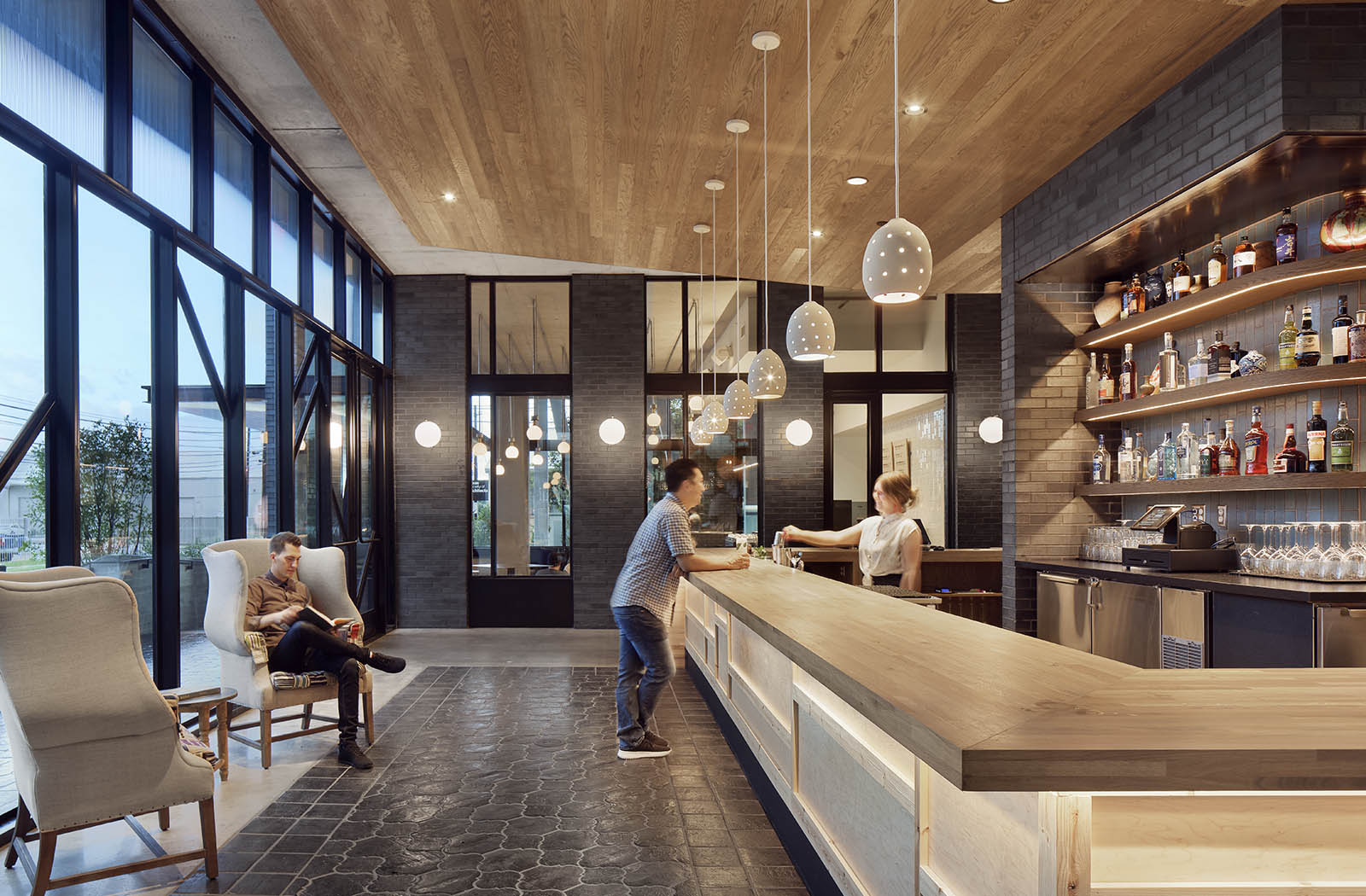 The Arrive Hotel comprises eighty-three rooms and a multi-use podium, housing two restaurants, three bars, a coffee shop, leasable street-side retail space and parking. The owners commissioned Baldridge to question established anti-public hotel tropes – the grand entry, the sad hotel restaurant, the always-empty lobby. They preferred to minimize the hotel identity instead. While it is a statement structure with a design that swings for the fences, the street-level restaurants claim the pedestrian identity.
