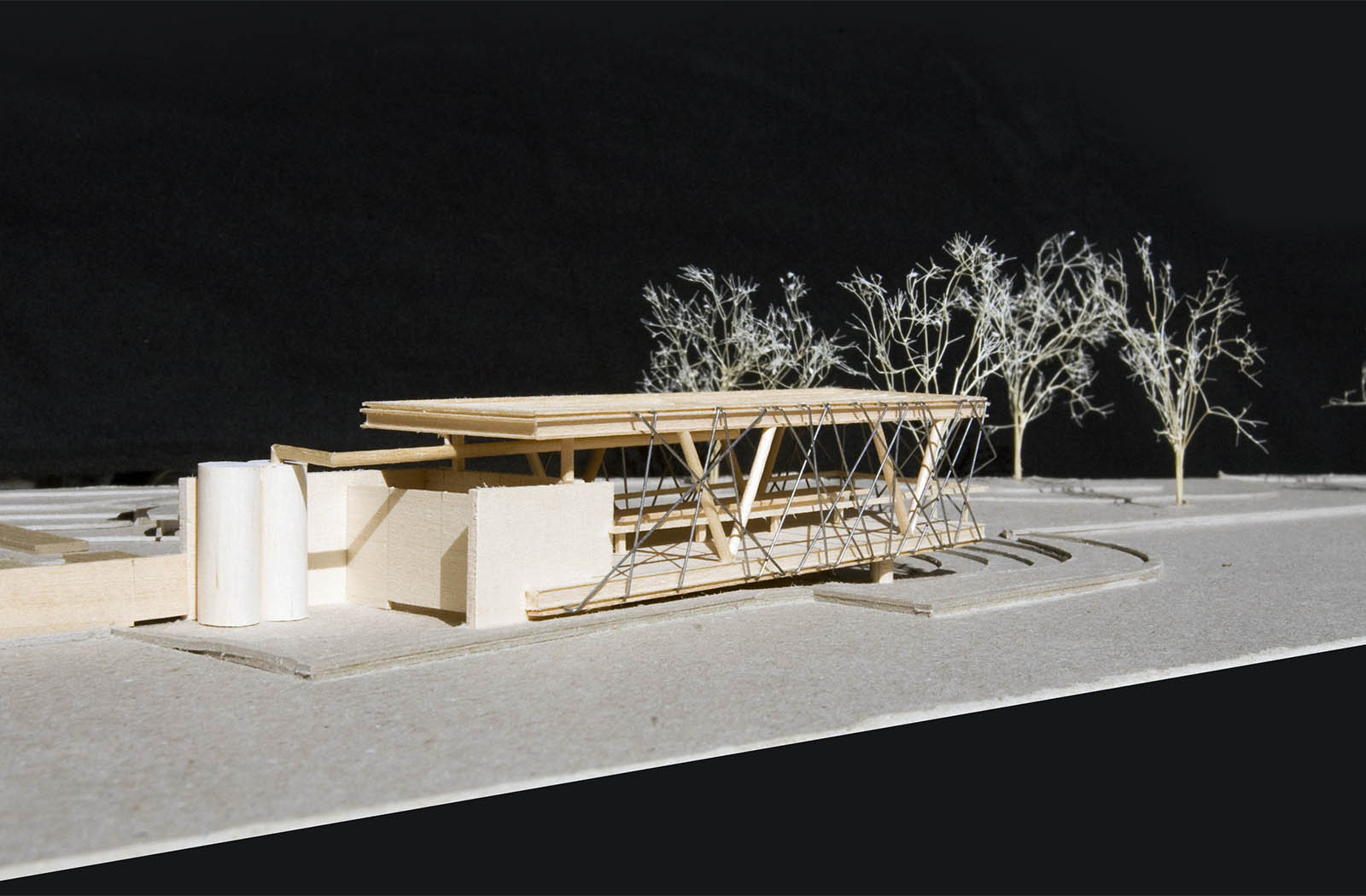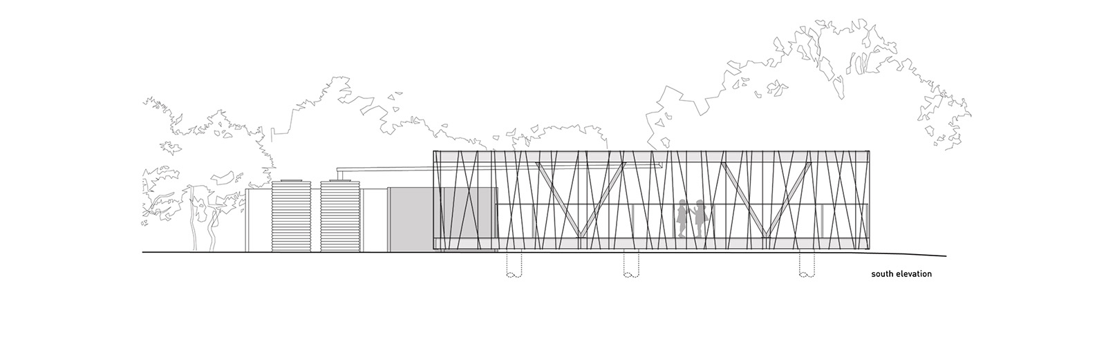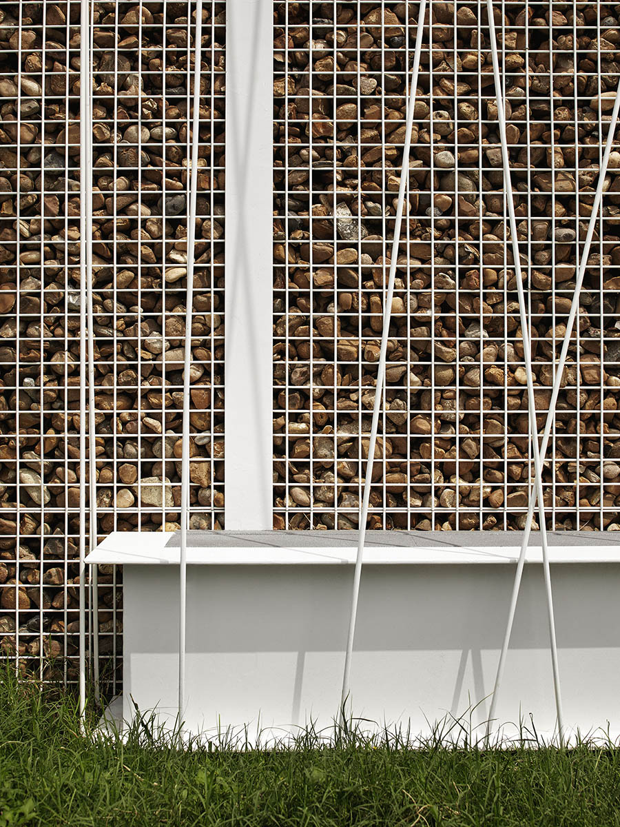 The structure features a vine supporting enclosure made of 3/8” steel dowel, almost as if a child had wrapped the entire project in string. Although playful, the deciduous vegetation also functions to provide shade in hot months and sun in the winter. A rainwater collection system anchors the project, supplying water for the gardens while teaching lessons about environmental stewardship