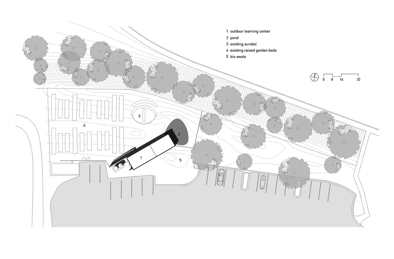 In the winter of 2010, we donated architectural services to design an open-air outdoor classroom for Casis Elementary, a large public school in central Austin, to augment the school’s burgeoning organic garden program. The low-maintenance structure houses work-tables where up to forty students might work under shelter from sun and rain, along with storage for supplies and gardening equipment.