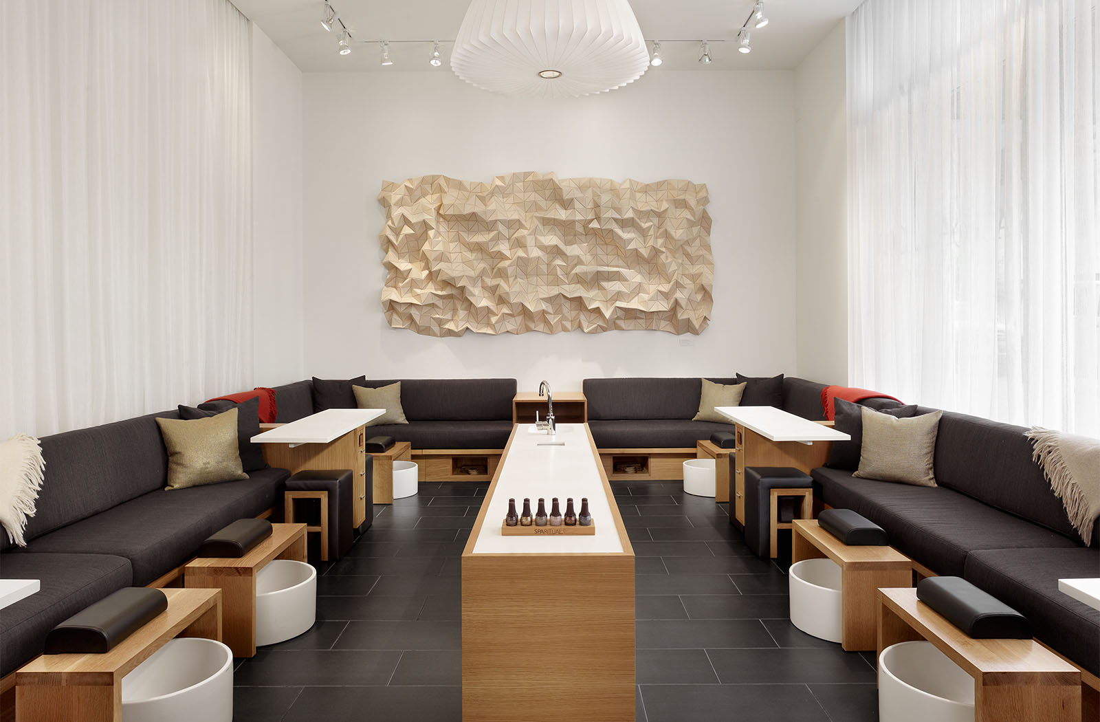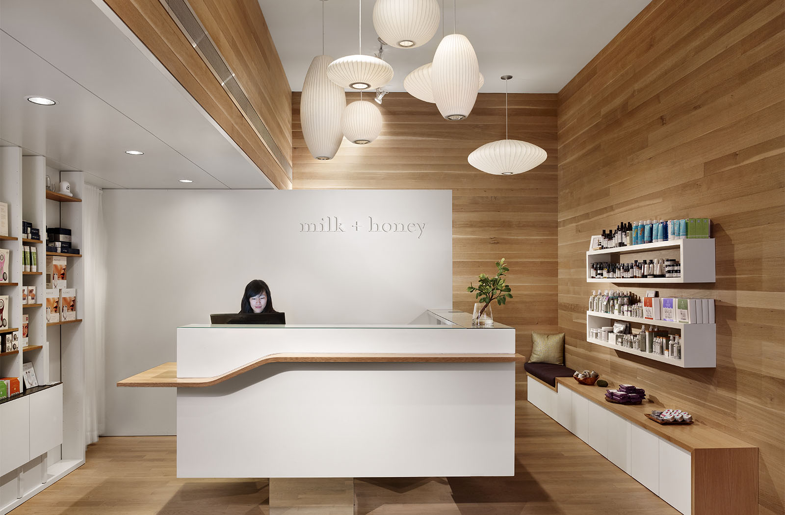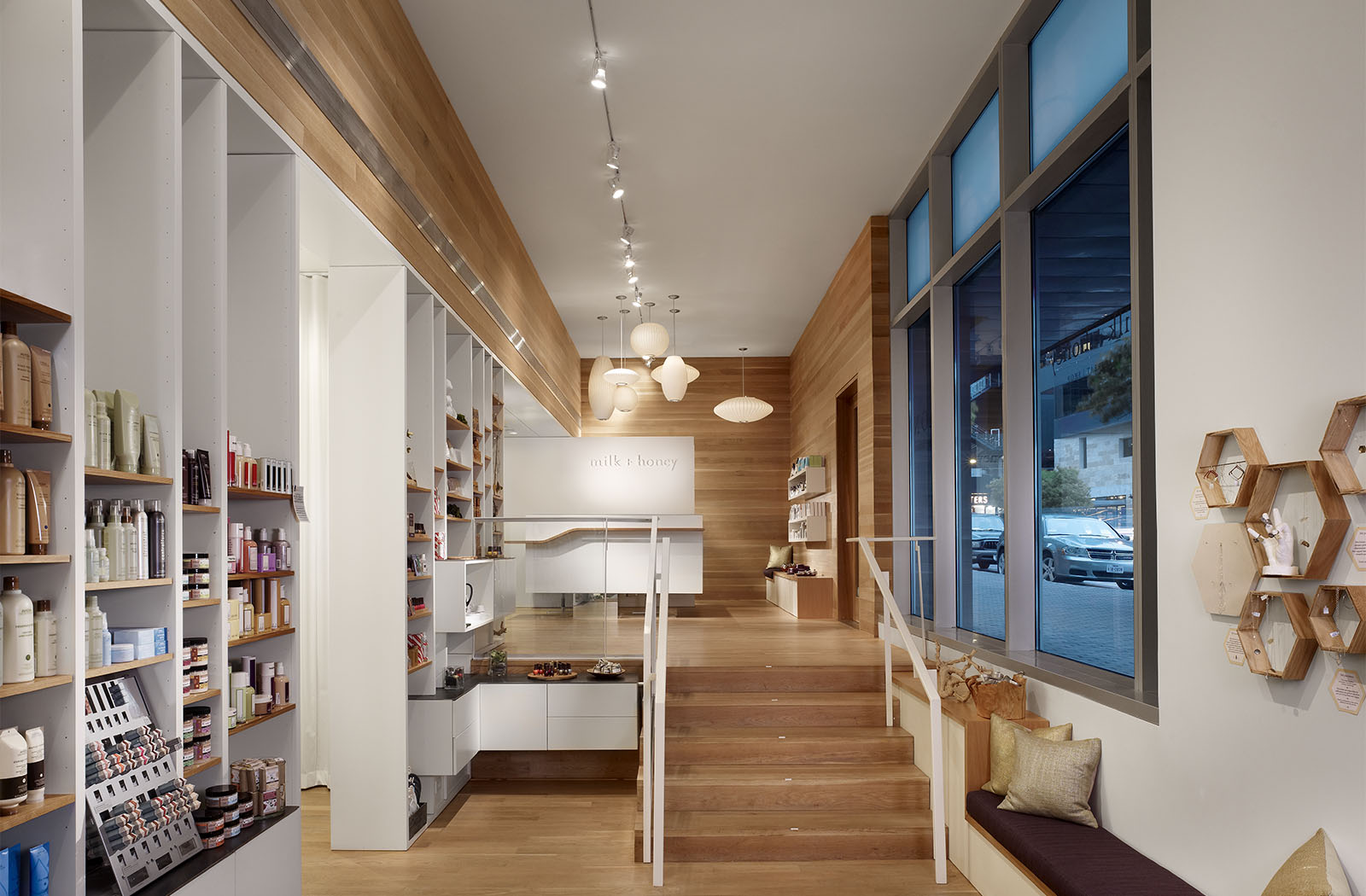 For its flagship location, Milk + Honey approached us to develop the unfinished ground floor of Austin’s downtown Silicon Labs building in a way that would bring together salon, spa and corporate offices under one roof. The design language of the flagship needed to simultaneously acknowledge the existing locations while tweaking and extending its brand identity beyond its Austin roots.