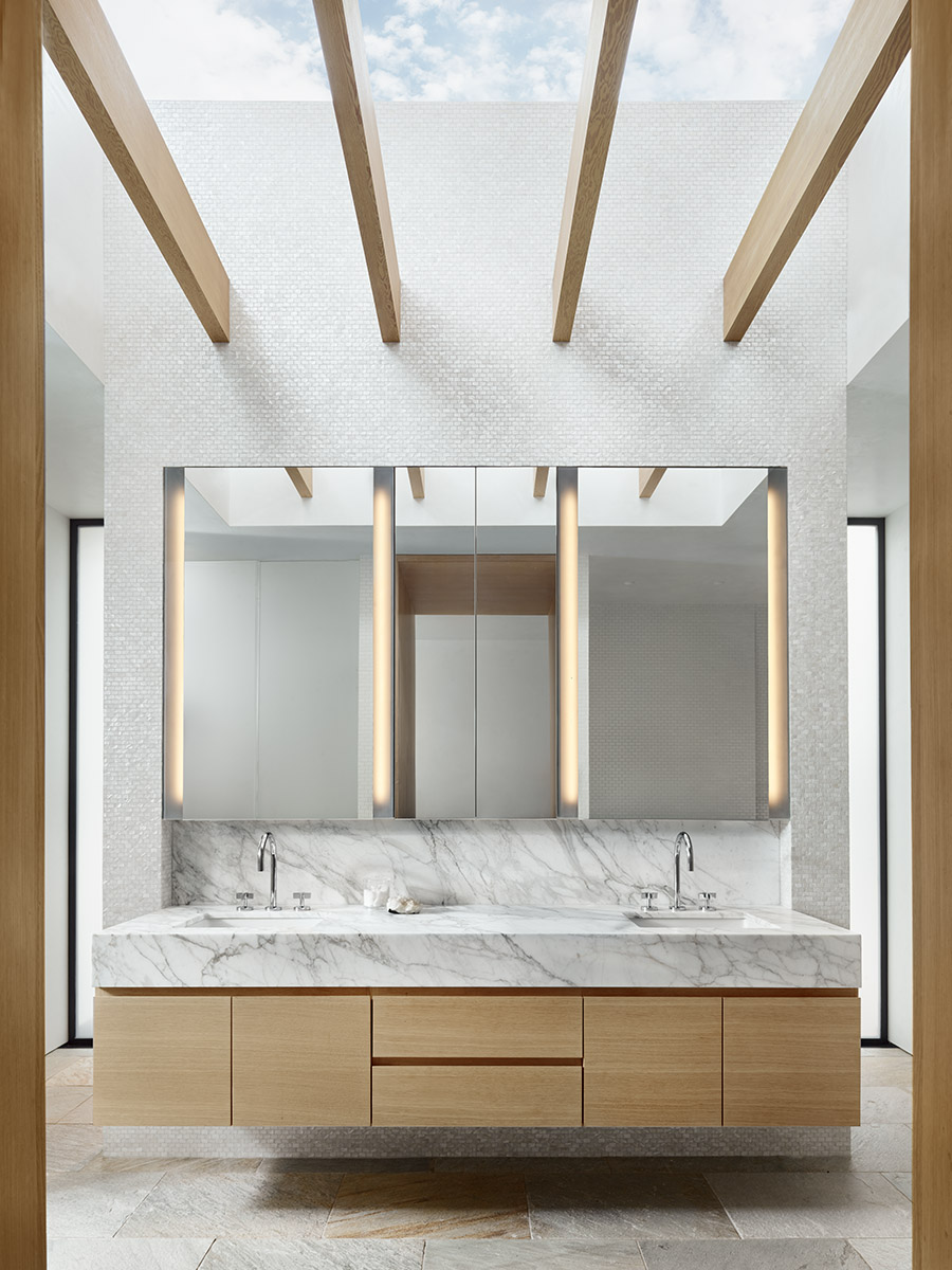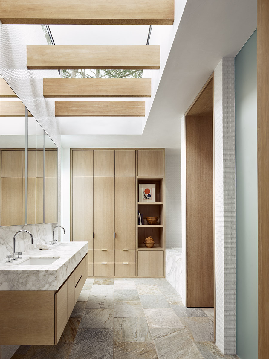 Our core mission involved the creation of a system of interventions that could provide an overall logic to the property. Along with the interior renovation, we worked to create a single eave datum rendered in Douglas fir to essentially cradle the preexisting house, while creating a new primary wing, entry sequence, and boathouse.