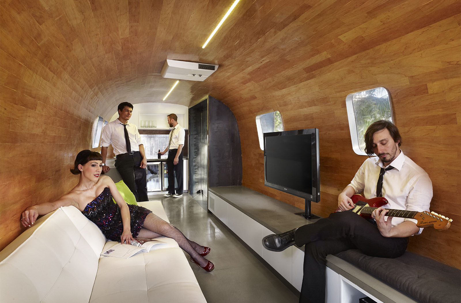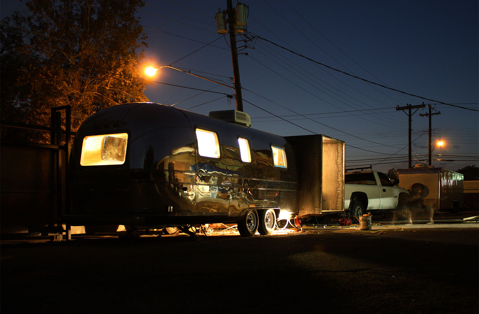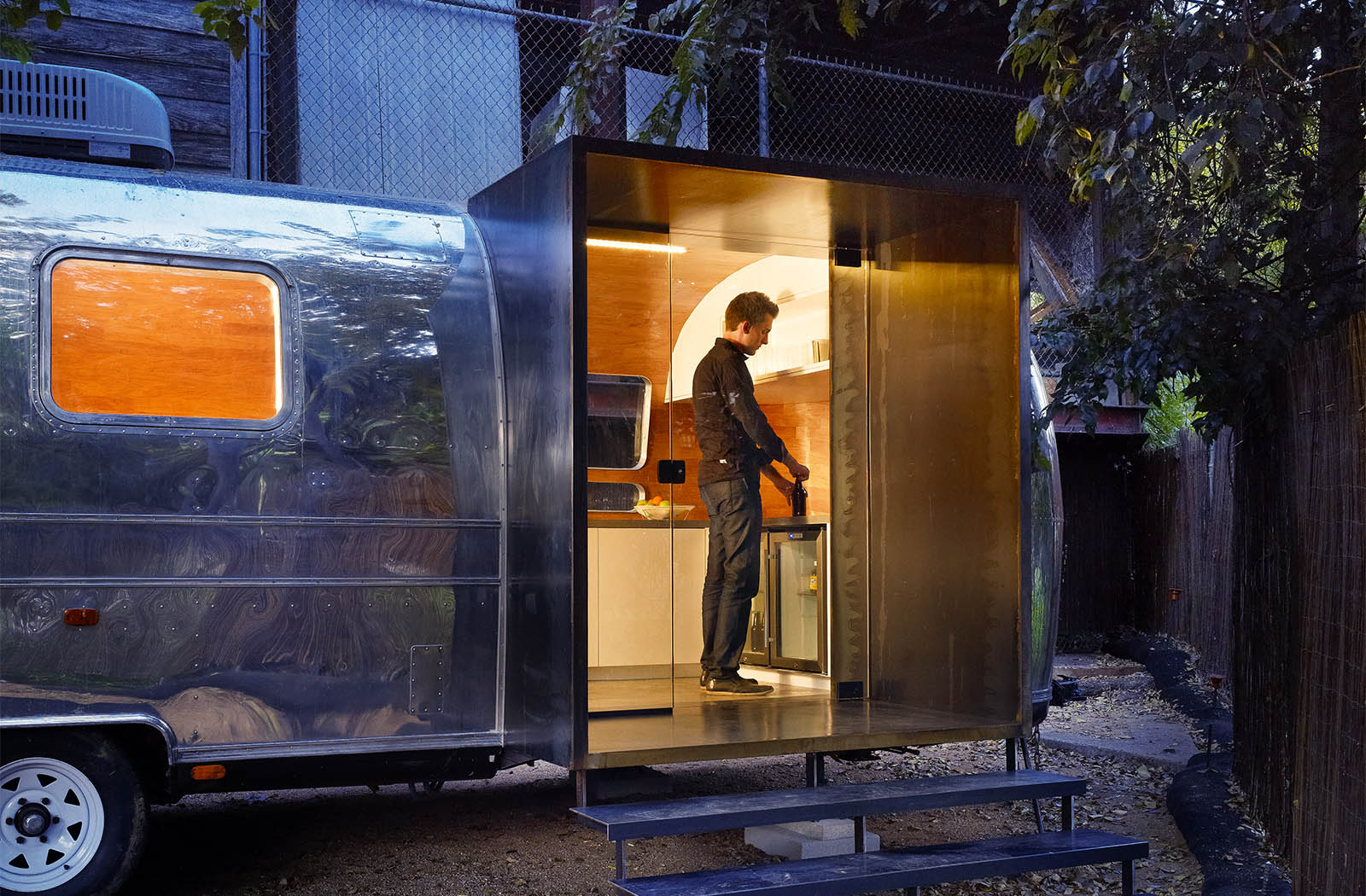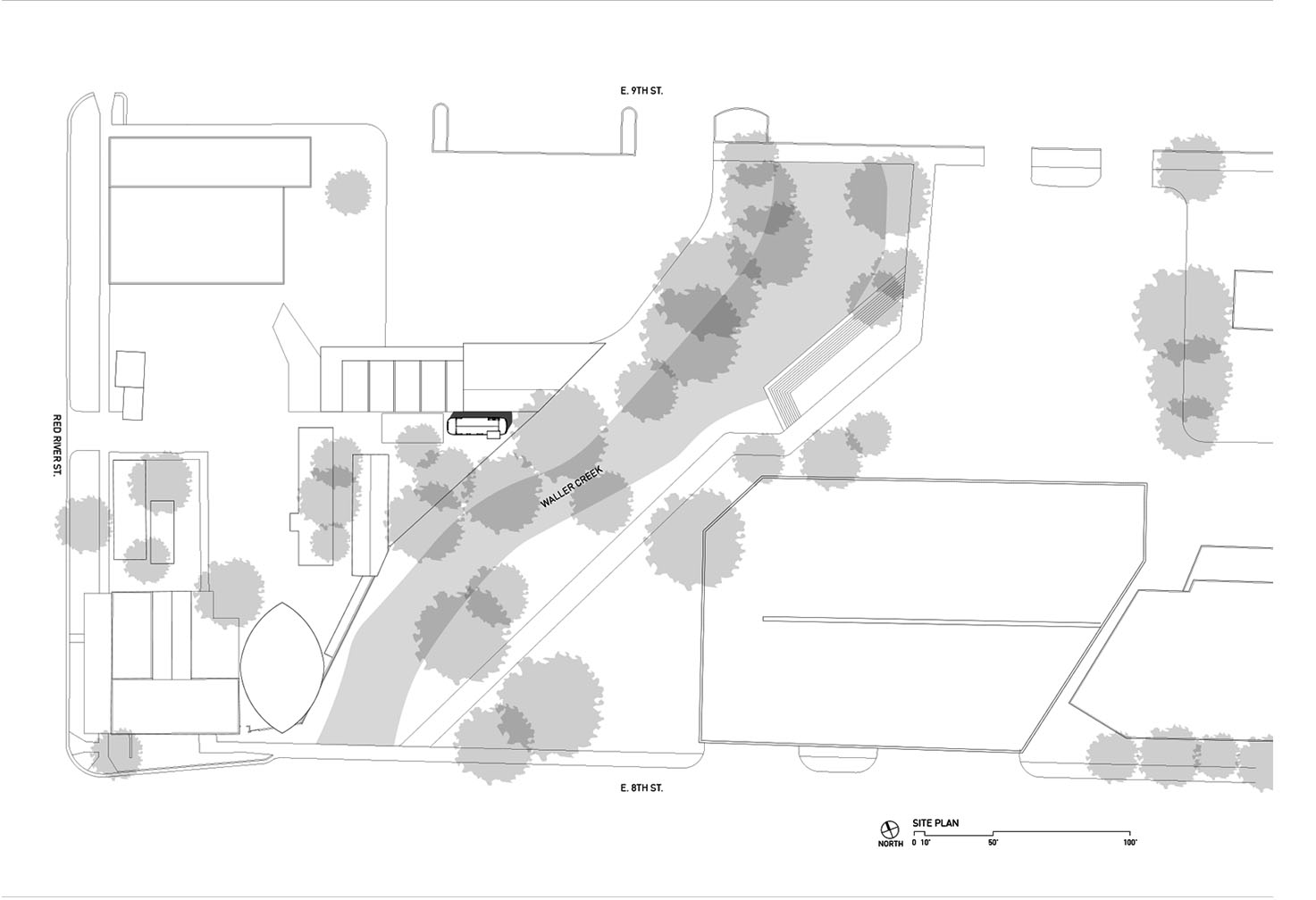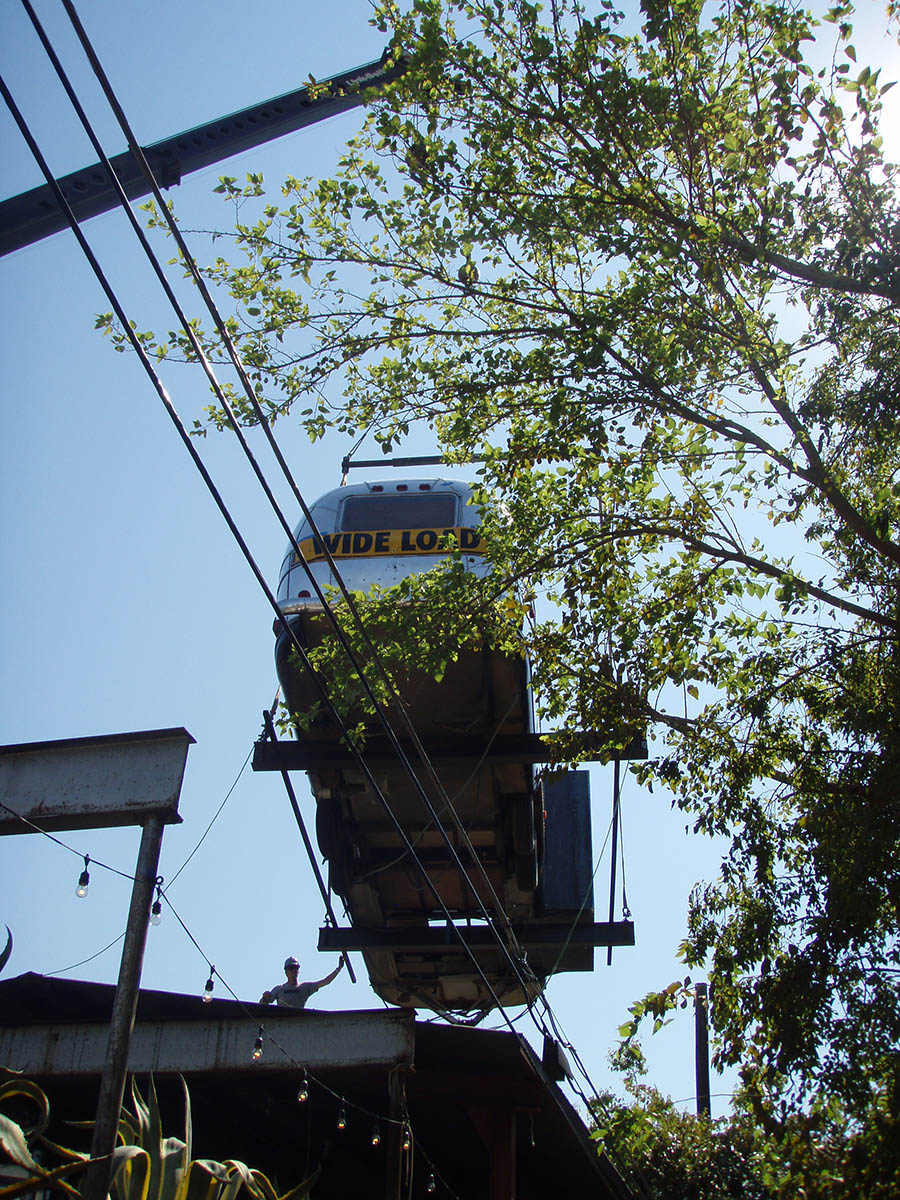 Stubbs Barbeque and Waller Creek Amphitheater (located in downtown Austin, Texas) engaged us to assist in improving its amenities in an inaccessible triangle along Waterloo Greenway (previously Waller Creek). The crux of the design problem was that the improvements would reside in a floodplain – whatever we installed needed to be moveable. The solutions was the fit-out of a disused 1970s Airstream trailer, transforming it into a “greenroom” for artists playing at the venue.