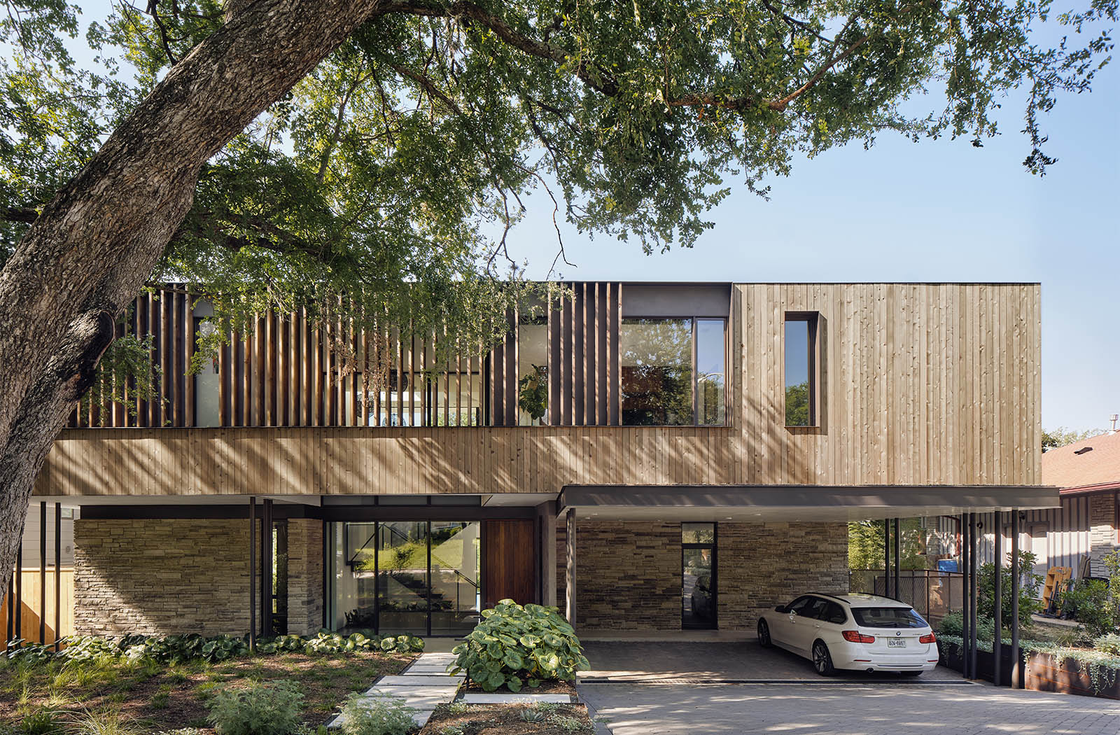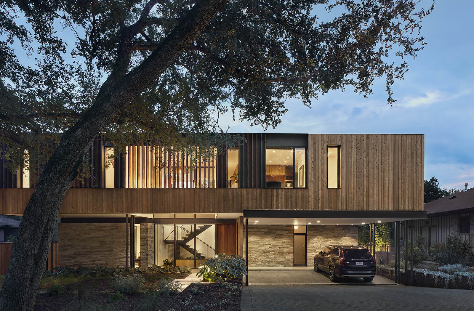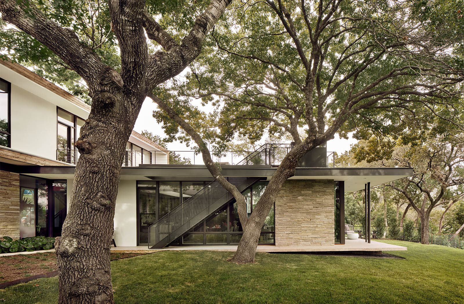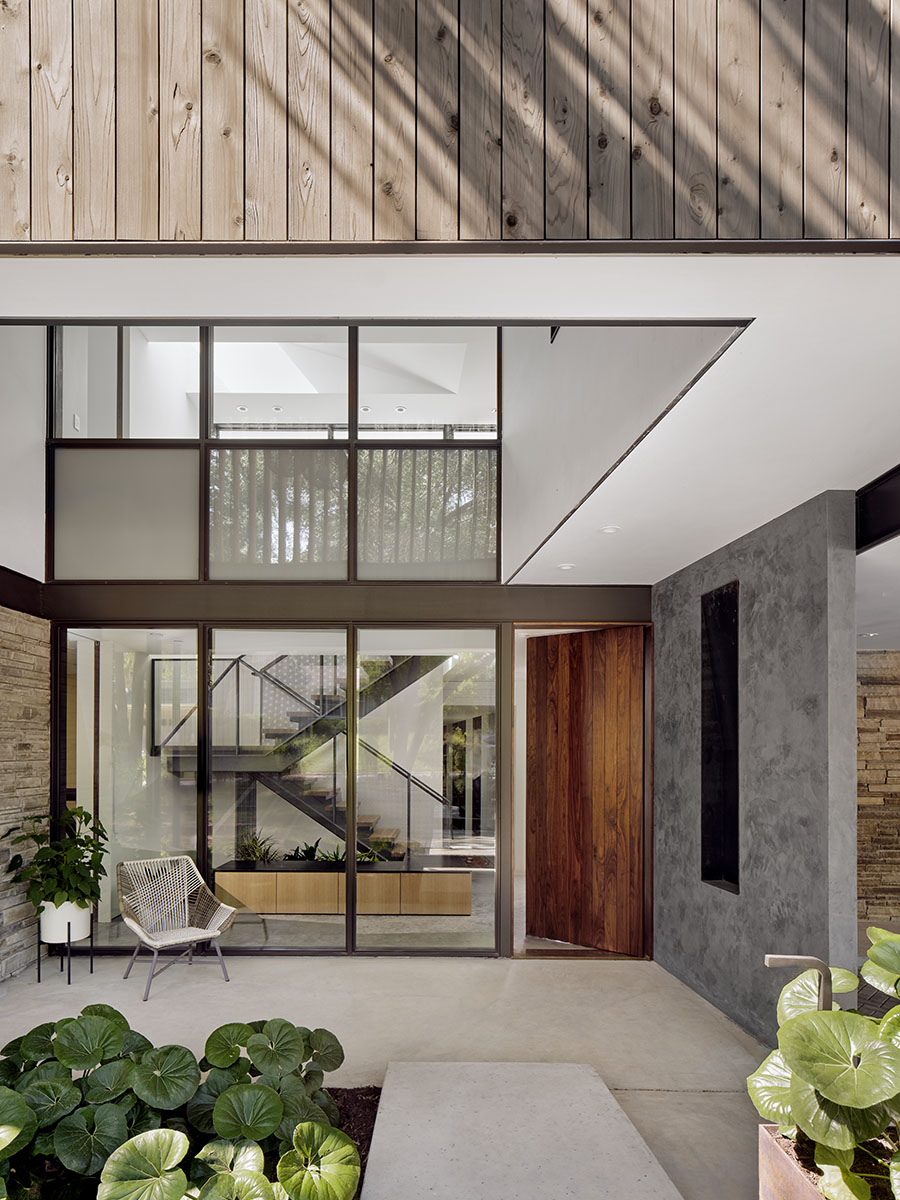 The Greenbelt Overlook Residence was a home for a family of three overlooking the greenbelt in Austin. It has since sold.